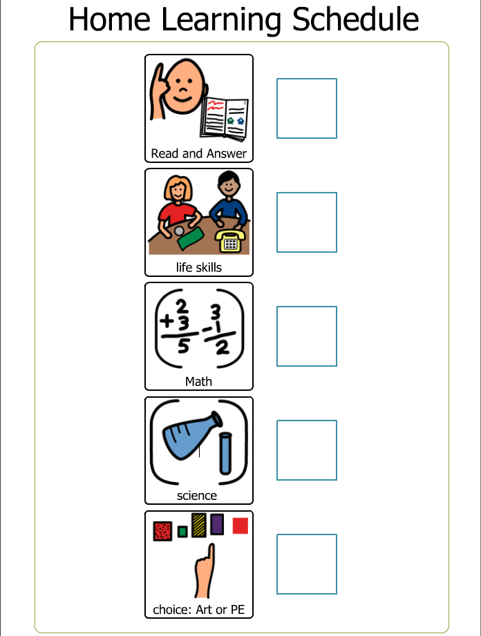 Here’s a schedule you can follow at home. The schedule is flexible and so are the activities. Here is a the schedule in addition to a visual schedule